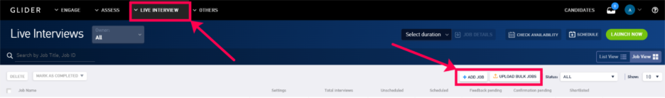 1. Log in to Glider and navigate to the Live Interview Dashboard.