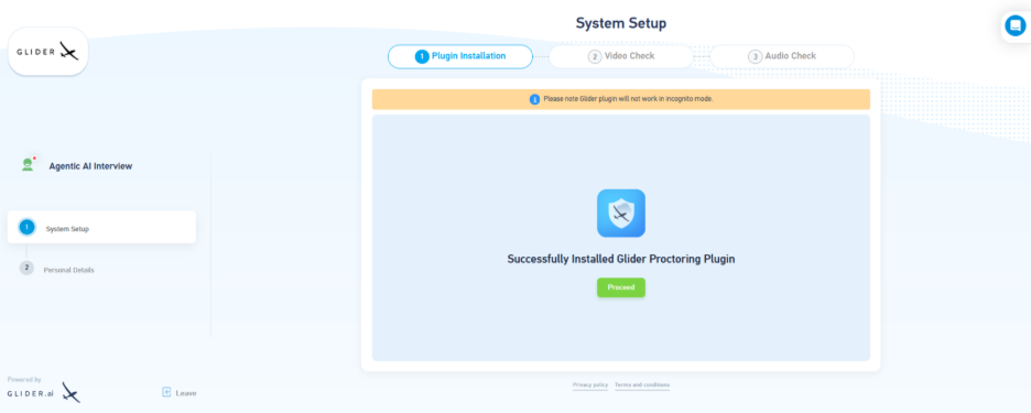 - Install the Glider plugin to enable monitoring during the interview. This ensures activity tracking and reporting for the interviewer.