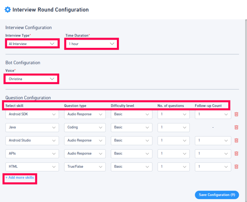 - You can select additional skills that are fetched by clicking on Add more skills as needed.