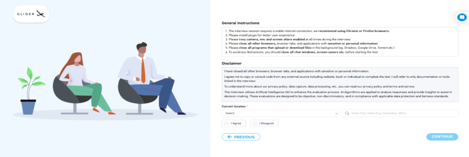 - If the candidate does not agree to the disclosure, the interview will be terminated and the interviewer will be notified via email.