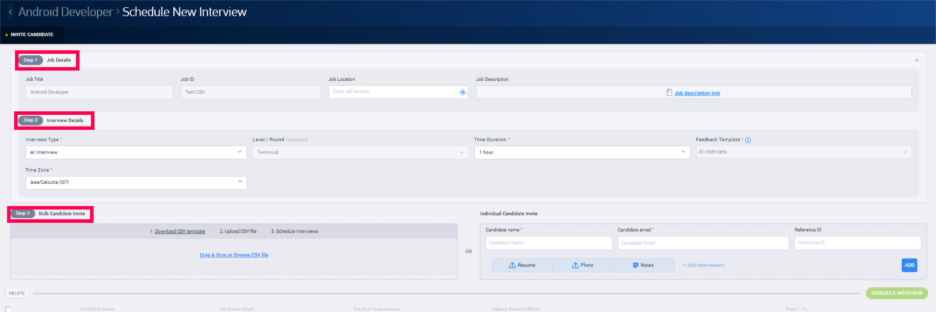 This manual provides a step-by-step guide for creating jobs, configuring interviews, and inviting candidates using the Agentic AI. This also consists of the steps that candidate need to follow to join the interview.